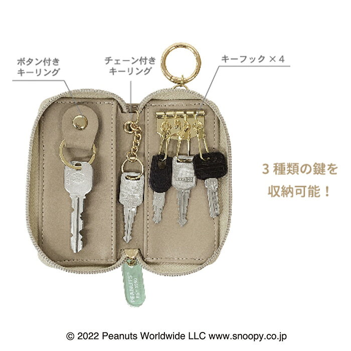 ピーナッツ スヌーピー キーケース PUレザー 大容量 キーリング チェーン フック 複数 スマートキーケース キーカバー 鍵入れ 鍵カバー 鍵 スマートキー 車 小物入れ 収納 革 レディース おしゃれ かわいい コンパクト 小さめ 小さい キャラクター チャーリー s-km-6m969