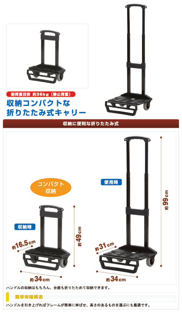 LOGOS ロゴス アウトドア キャリーカート 2輪 折りたたみ おすすめ 軽量 クイックキャリー 総重量:(約)2.0kg サイズ:(約)34×31×99cm 収納サイズ:(約)34×16.5×49cm 耐荷重目安(静止荷重):(約)36kg 主素材:ポリプロピレン、スチール ●収納コンパクトな折りたたみ式キャリー ●簡単伸縮構造 LOGOS ロゴス アウトドア キャリーカート 四輪 折りたたみ ワンタッチ おすすめ 軽量 バーベキュー キャンプ 海 ビーチ ピクニック レジャー