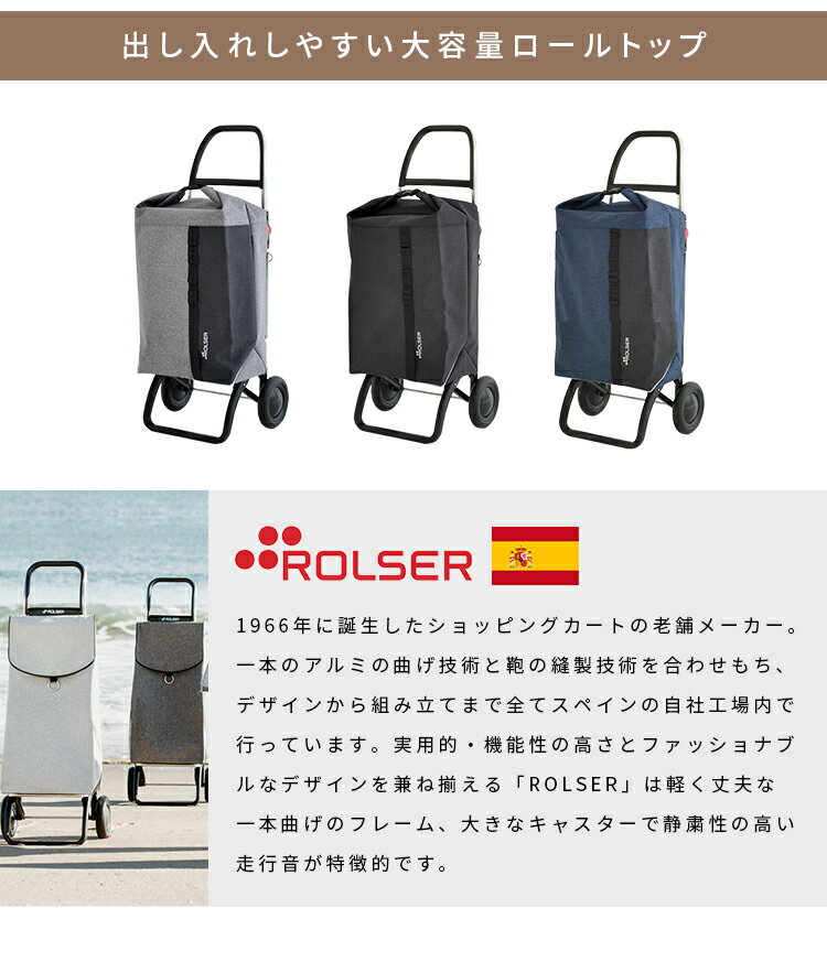 スペイン老舗メーカーのショッピングカートアルミ曲げとカバン縫製技術を誇る老舗メーカーにより作られたロルサーは、その品質の高さとデザインの良さで、ヨーロッパを中心に世界で高い評価を受けています。