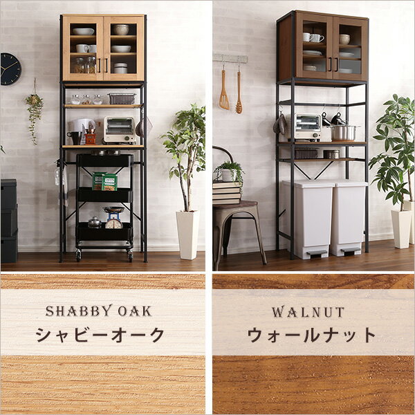 レンジラック ダストボックス 食器棚 キッチン収納 レンジ台 ヴィンテージ ゴミ箱 ゴミ箱上ラック スリム 幅64cm おしゃれ 一人暮らし ウォールナット シャビーオーク スチール 【GREACK-グリック-】【OG】 【BG】