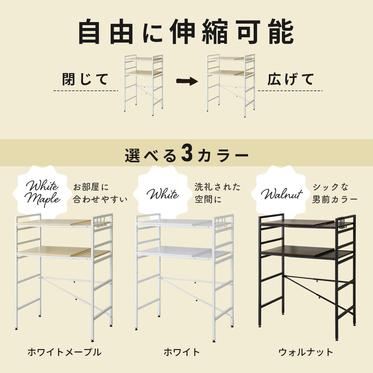 配送について 送料 無料 (沖縄・離島・一部地域見積り) ●商品詳細 -infomation- 商品名 商品名:ミリア(収納)【Miria】 サイズ 幅60〜80×奥行45×高さ110.5(cm) ※個体差により若干の差異あり 材 質 表面加工:メラミン塗装 構造部材パーティクルボード・スチールパイプ 重 量 約14kg 耐荷重 棚板:各8kg S字フック:1kg サイドフレーム:各2kg 梱包サイズ 約幅59×奥行45×高さ15.5(cm) 総重量(梱包材含む) 約15kg 備 考 ※他商品との同梱は出来かねます。